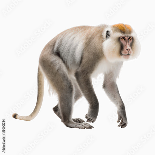 Monkey in posture: A captivating portrait of a monkey, revealing its unique features and attentive gaze, set against a simple background.