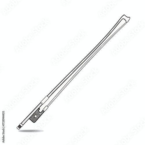 Monochromatic illustration of a classic violin bow, an indispensable accessory for producing rich, resonant sounds from string instruments, representing the art of musical performance