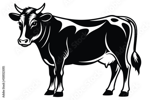 Monochrome Cow Silhouette in Black and White on White Background