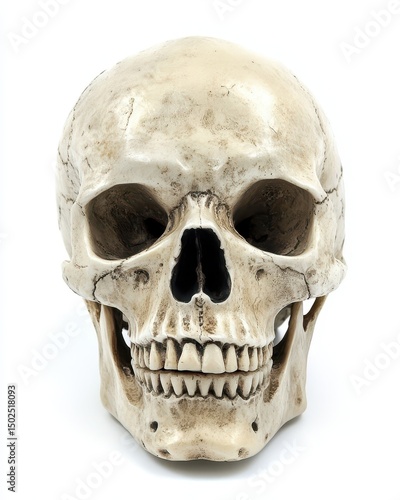 Monochrome Human Skull Isolated on White Background - Eerie Bone Structure for Halloween Themes