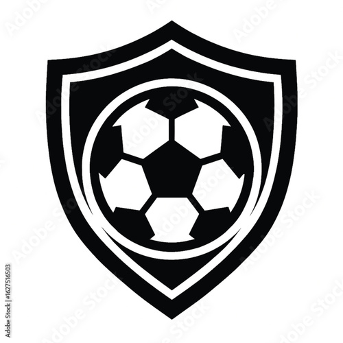 Monochrome soccer shield crest icon with a football for a sports team emblem