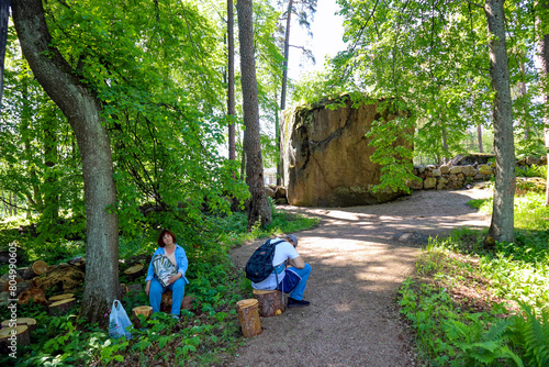Monrepos Park, recreation in the park, promenade by the lake, natural landscape, tourist recreation in the reserve.