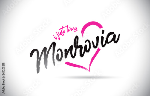 Monrovia I Just Love Word Text with Handwritten Font and Pink Heart Shape.