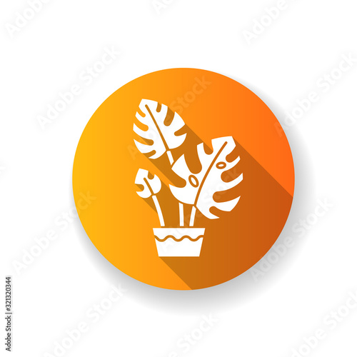 glyphs, white, colours, icon, monstera, swiss, cheese, cleaving, leaf, philodendron, indoor, air, distilled, decorative, house, home, plant, houseplant, window, interior, green, decor, style, domesticated, ornamental, potted, gardening, cultivate, grow, flat, vector, long, shadow, web, design, illustration, item, logotype, concept, pictogram, signs, clip art, symbol, element, filled, app, round, logotype, background, orange