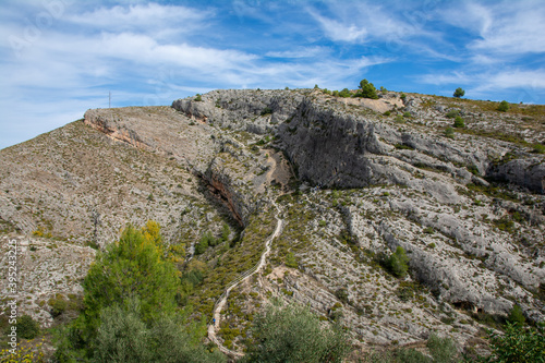 mountain, landscape, rock, heaven, nature, stone, blue, hill, cloud, travel, cliff, view, summer, green, spain, peak, sea, tree, forest, scene, outdoors