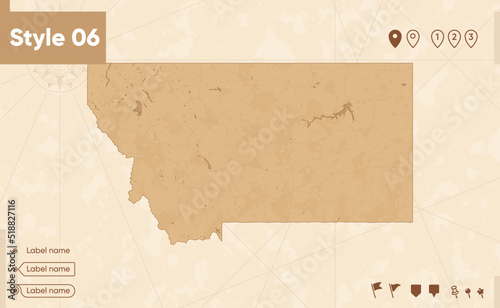 Montana, USA - map in vintage style, retro style map, sepia, vintage. Vector map.