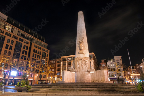 Monument on the Dam in Amsterdam at night in christmas time in the Netherlands