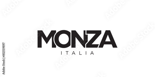 Monza in the Italia emblem. The design features a geometric style, vector illustration with bold typography in a modern font. The graphic slogan lettering.