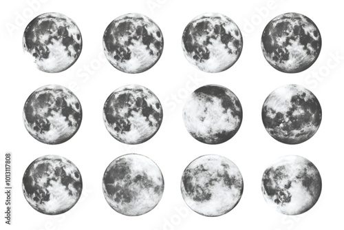 Moon Set, Different Illustrations Of Moons, Vector Illustration, Isolated on White Background, Astronomy and Night Sky Concept