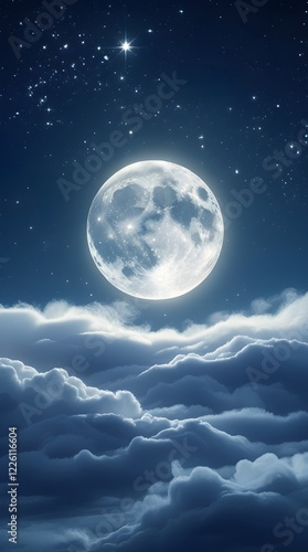 moonlit sky with soft, feathery clouds radiating a warm