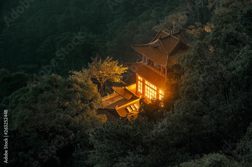house, night, nature, tree, architecture, sky, landscape, building, tree, old, blue, sunset, travel, bungalow, mountain, forest, river, light, temple