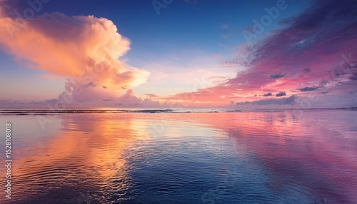 morning clear seascape with colorful sky natural soft background beautiful magical pink and gold reflected in the water