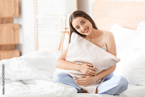 Morning of beautiful young woman in bedroom