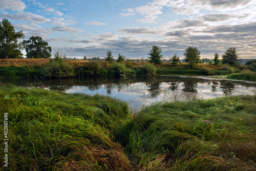 river, duck pond, morning, reed, green, grass, sedge, coppice, water, dawn, light, sunny, autumn, yellow, red, dry, timber, countryside, wild, orange, early, nature, nobody, fog, mist, mystical, tender, blurred, soft, pleasure, fresh, tree, plant, nature reserve, walking, meadow, shore, ray