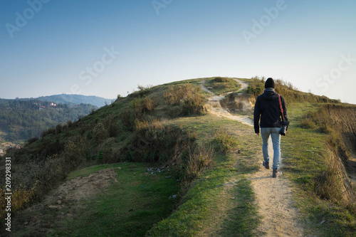 landscape, nature, trail, path, traveler, nepal, hill, journey, outdoors, mountain, hike, sky, travel, grass, solitude, adventure, rock, road