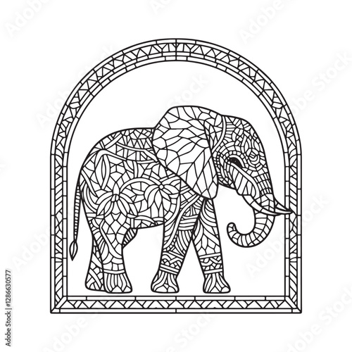 elephant, mosaic, outline, window, arc, minimalist, decorative, pattern, design, art, animal, illustration, vintage, nature, africa, zoo, safari, drawing, creative, decoration, mammal, wild, wildlife, simple, style, contour, graphic, artistic, colouring, template, isolated, trunk, artwork, exotic, vignetting, background, beautiful, black, element, shape, hand-made, picture