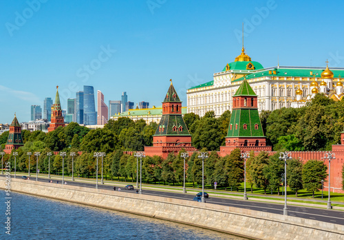 Moscow cityscape with Kremlin towers and Grand palace, Russia