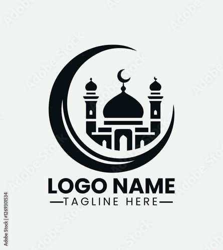 Mosque and Crescent Logo Design, Islamic Mosque Logo, Muslim Community Logo, Spiritual Center, Islamic Architecture