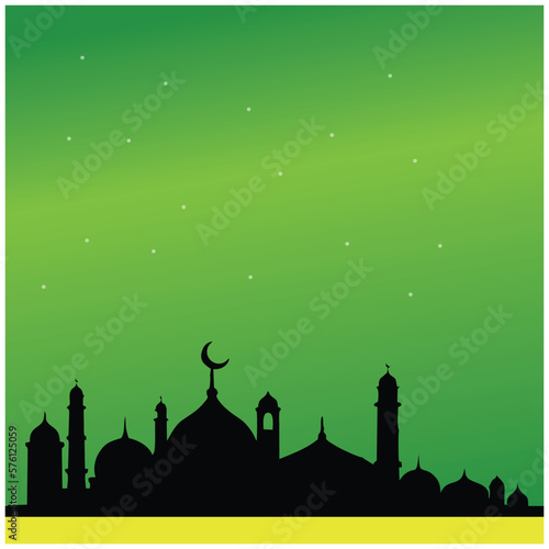 Mosque silhouette on green background, eps10 vector illustration. Illustration of greeting with a Muslim theme. Suitable for designing greeting cards, backdrops, banners etc