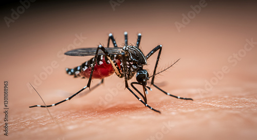 mosquito sucking blood, macro shot of an Aedes mosquito feeding on human skin