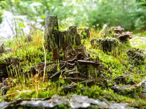 moss, forest, stump, tree, close, up, closeup, detail, macro, nature, natural, botanical, plant, autumn, autumn, bright, closeup, green, wood, scenery, miniature, subtile, leaf, leaf