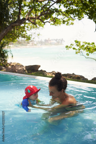 sea, water, beach, swimming, summer, pool, woman, baby, swim, blue, fun, people, vacation, holiday, boy, young, children, tropical, travel, beautiful, bikini, sport, family, happy, beauty