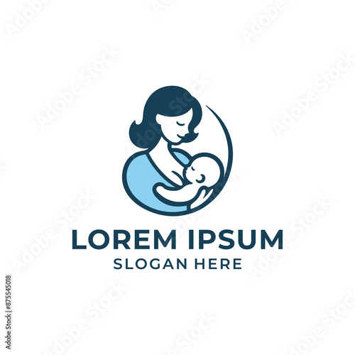 Mother and Baby Logo Design. Babysitter Vector. Logo illustration of a Mother Holding a Baby and Hugging the Baby. Mother's Day symbol.