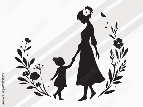 Mother and Child Holding Hands Silhouette Perfect for Mothers Day Art Designs and Crafts