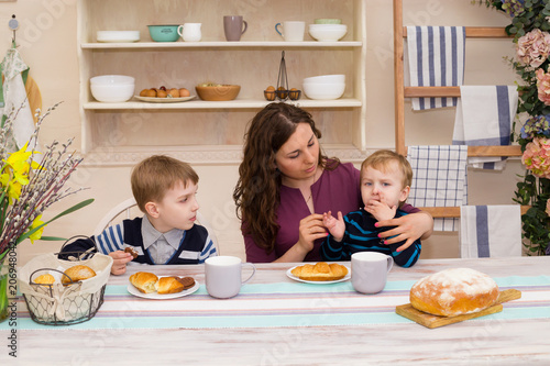 breakfast, children, family, mother, people, eltern, boy, son, mother, eating, home, morning, meal, 2, food, healthy, children, together, woman, caucasian, happy, kitchen, young, bread, adult, happiness, health, sitting, table, female, togetherness, lifestyle, milk, smiling, juice, feeding, single, blue, complicity, eye, having, childhood, dinner, fruit, motherhood, nourishment, parenthood, children