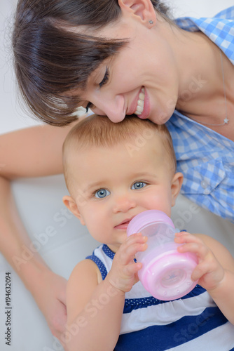 mother, baby, cuddle, face, offspring, cute, family, infant, happiness, eltern, childhood, beautiful, people, care, resting, children, tranquil, toddler, sweet, love, innocence, human, bottle, drink, female, portrait, home, indoor, chew, teething