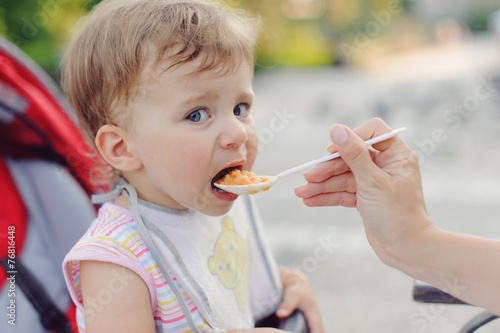 baby, food, eating, porridge, mother, hand, people, little, cute, feeding, lifestyle, 1, face, children, breakfast, spoon, childhood, human, healthy, ravenous, beautiful, meal, fun, small, colours, image, only, person, caucasian, lunch, messy, dinner, innocence, shot, care, love, hair, looking, family, daughter, eye, pushchair, red, street, park