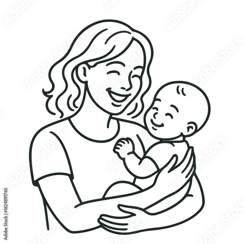 mother, baby, children, eltern, love, family, happiness, care, affection, caring, infant, newborn, embracing, holding, portrait, joy, cute, human relationships, together, nurturing, line art, monochrome, black-and-white, illustration, linear, hand-drawn, flat, drawing, cartoon, mother, smiling