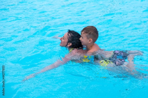 Mother son pool fun family. baby