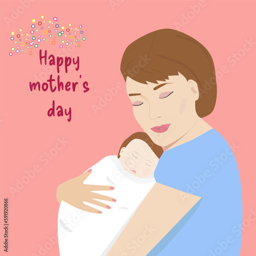 Mother's Day poster. Mother and cute baby. Vector illustration.