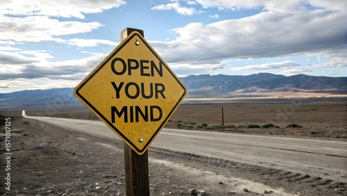 Motivational Concept, Warning Sign Saying Open Your Mind, Motivational Quote