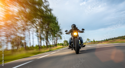 motorbike on the road riding. having fun riding the empty road on a motorcycle tour / journey