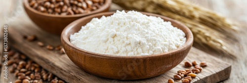 flour, wheat, grain, ear, grain, bowl, table, wood, wooden, mound, food, ingredient, cooking, baking, agriculture, organic, harvest, healthy, brown, close, cutting, board, cereal, diet, natural, nourishment, plant, product, rustic, rye, seed, selective, sharpened, background, breakfast, nobody
