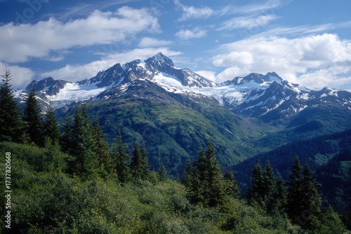 landscape, mountain, nature, beauty, scenic, peak, blue, travel, snow, view, sky, forest, tour tourism, outdoors, summer, scenery, park, rock, alpine, high, green, glacier, alps, range, white, background, vale, cloud, europa, panorama, vacation, hiking, cold, summit, adventure, winter, tree, national, ice, wilderness, top, panoramic, season, altitude, rocky, pine, hill, lake, european