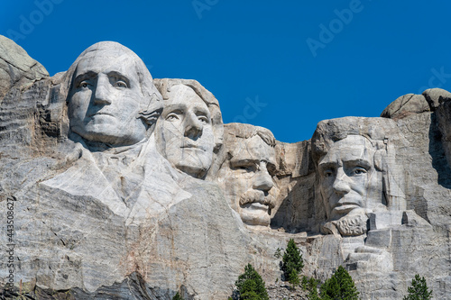Mount Rushmore close up view, presidents sculpture in South Dakota