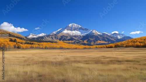 Mount sneffels dominating the landscape during fall foliage in colorado, usa