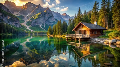 mountain, cabin, lake, depth of field, landscape, nature, serene, tranquil, get-away, peaceful, water, mountain, forest, sky, tree, river, snow, tree, park, mirror, summer, outdoors, duck pond, autumn, scenic, peak, travel, wilderness, cloud, view