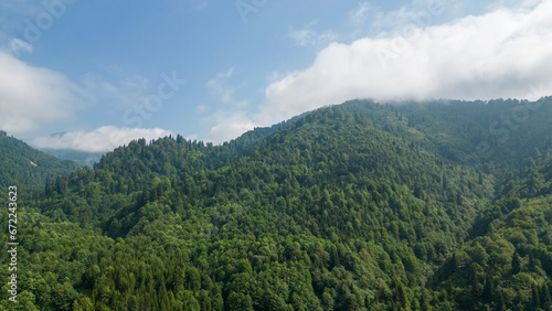 Mountain covered with forests. Aerial view forest