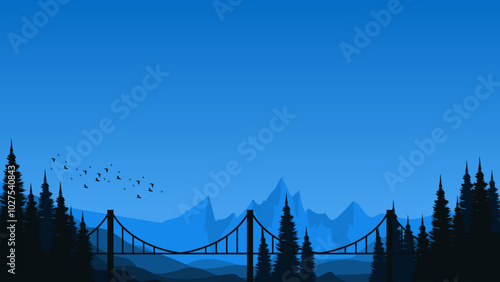 mountain flat design with bridge vector illustration good for poster template, web banner, blog banner, website background, tourism promo poster, adventure design backdrop and advertising