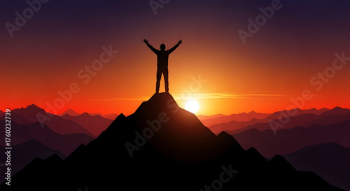 success, achievement, goal, mountain, hiker, climbing, leadership, challenge, outdoors, adventure, motivation, travel, vector, triumph, one person, journey
