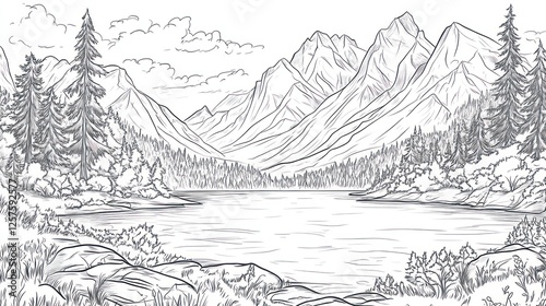 lake, mountain, nature, landscape, scenery, travel, tour tourism, serene, peaceful, calm, mountain, range, water, sky, cloud, tree, forest, wood, rock, shore, view, wilderness, panorama, scenic, beautiful, majestic, tranquil, picturesque, idylli, relaxing, summer, spring, autumn, winter, background, illustration, drawing, art, graphic, design, image, photo