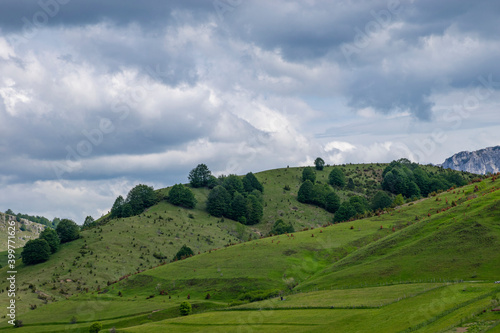 landscape, sky, nature, mountain, green, grass, field, summer, countryside, hill, mountain, blue, meadow, view, forest, tree, cloud, panorama, rural, cloud, village, travel, country, vale, hill