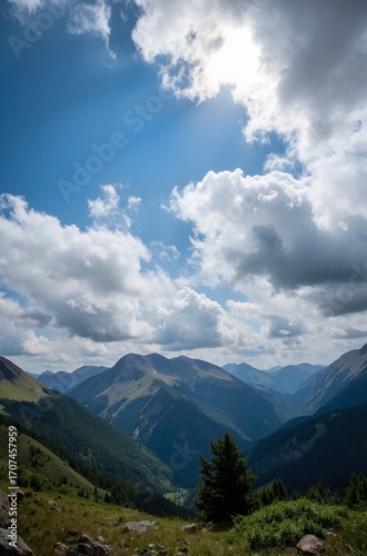 mountain, landscape, sky, mountain, nature, cloud, alps, summer, panorama, view, snow, travel, cloud, peak, green, forest, vale, europa, hill, grass, tree, outdoors, tour tourism, panoramic, high
