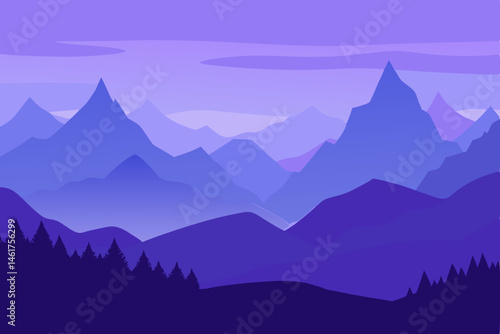 mountain, landscape, mountain, nature, sky, fog, hill, morning, vector, sunrise, silhouette, snow, peak, view, forest, cloud, sunset, cloud, mist, alps, vale, blue, winter, high, illustration