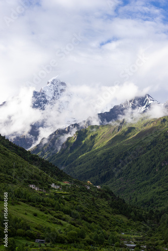 mountain, landscape, mountain, nature, sky, cloud, summer, panorama, snow, travel, peak, forest, grass, cloud, hill, green, outdoors, vale, panoramic, scenery, rock, tour tourism