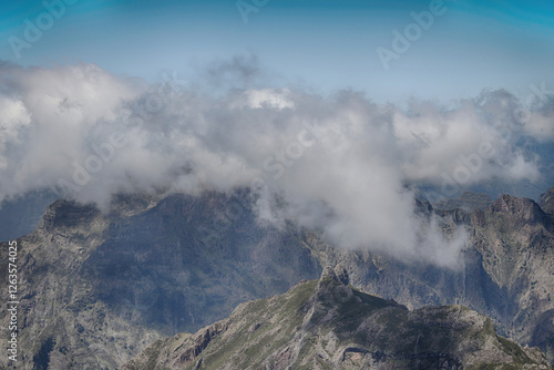 Mountain landscape with lines of mountains, trekking in Pico do Arieiro